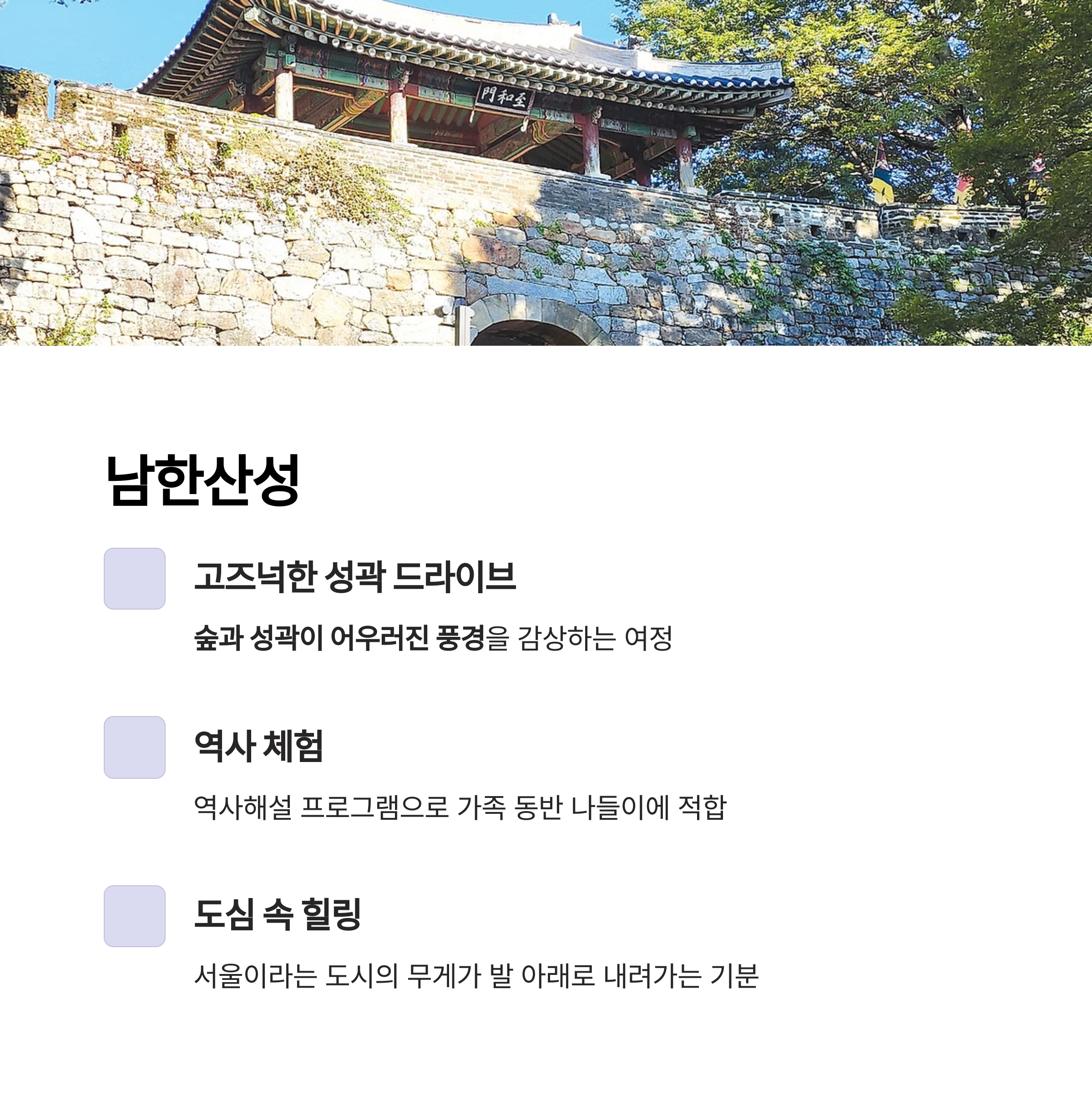서울에서 가까운 남한산성은 계절마다 다른 분위기를 품은 공간입니다.
